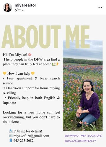 こんにちは、toriloverです。 いつもは買い物やレストラン情報ばかりの日記ですが、たまには違うお役立ち情報を掲載です! これからダラス周辺でアパートや賃貸住宅を探すという方に、自分だけではちょっと・・・というようであれば、お手伝いいただける日本…