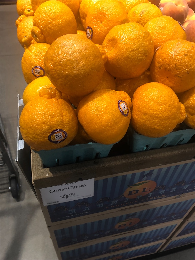 毎年1月~4月に出るというデコポン、SUMOですが、ふと別の用事でwholefoodsに行きましたら、なぜかありました。